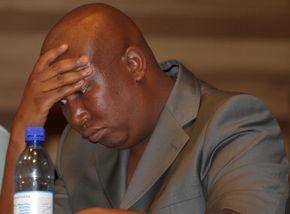 Back on Wednesday morning, businessman Kenny Kunene arrived looking fly in jeans and a blue blazer with red trimming and white sunglasses.