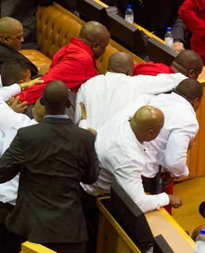 Mbete ordered the legislature’s protection officers to enter the chamber, adding “the security forces must come in in terms of the powers and privileges act”.