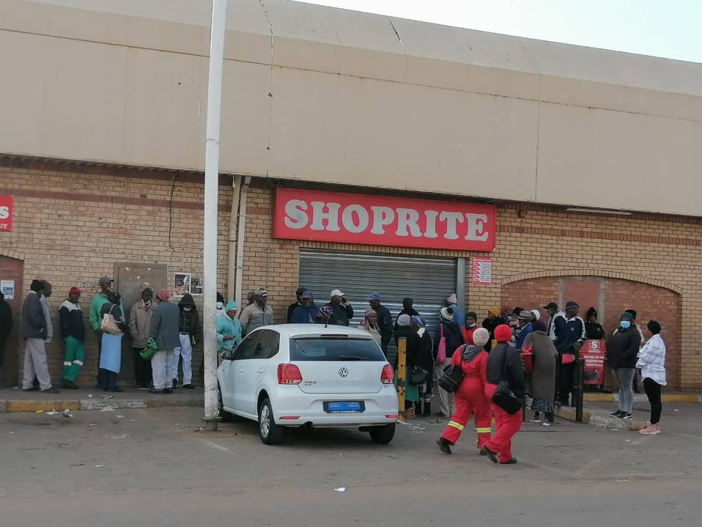 Picture: Customers queueing outside Shoprite store in Taung/Obakeng Maje