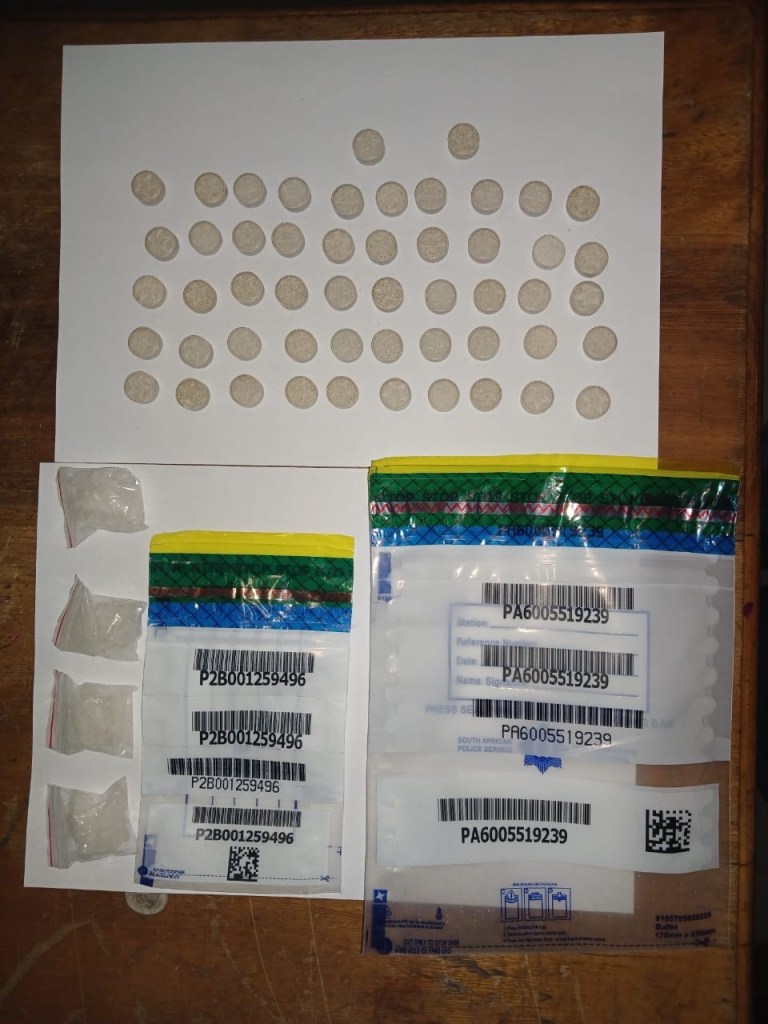 The Northern Cape police spokesperson, Lieutenant Col, Sergio Kock said the house in Marydale, was raided and the police confiscated the Mandrax and Crystal Meth.