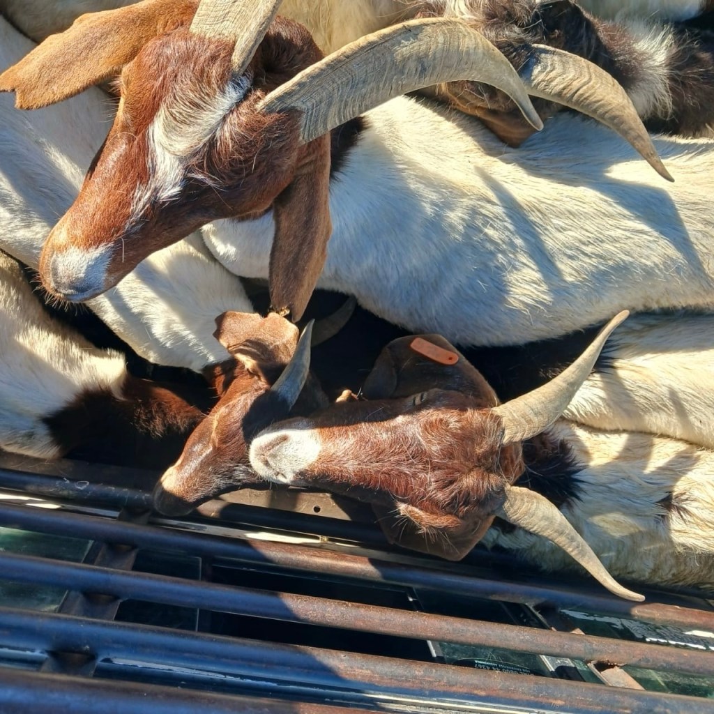 The North West police spokesperson, Brigadier Sabata Mokgwabone said the vigilant police officers were on routine patrol duties on the N14 (Kuruman / Vryburg) road when they stopped a suspicious white Toyota Hilux bakkie. Mokgwabone said in the process of questioning the accused, the police lifted the bakkie’s back green cover and found 19 goats worth R30 000.