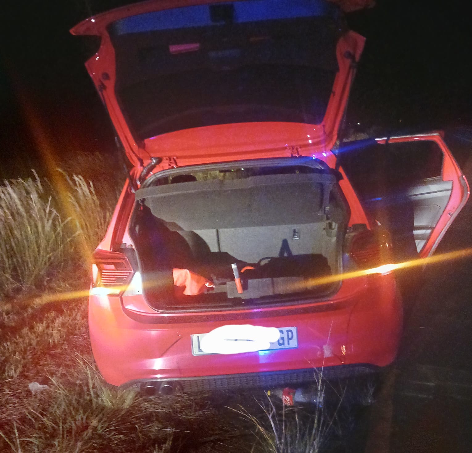 Picture: A red Polo Vivo and firearms seized by police/Supplied