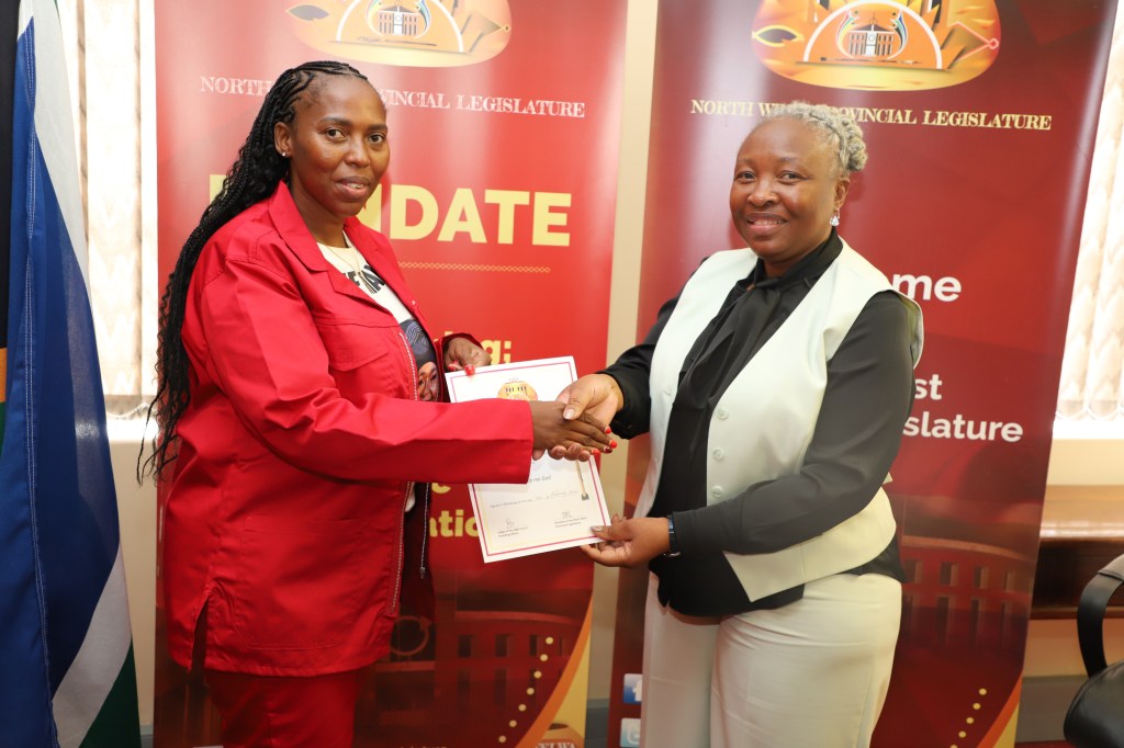 24 February 2026- The Speaker of the North West Provincial Legislature, Dr Desbo Mohono has welcomed Amogelang Jeannette Matuane as the new Member of the Provincial Legislature (MPL). Mohono said this follows the passing on of the late Modiegi Dikolomela from the Economic Freedom Fighters (EFF) on 2 February 2026.